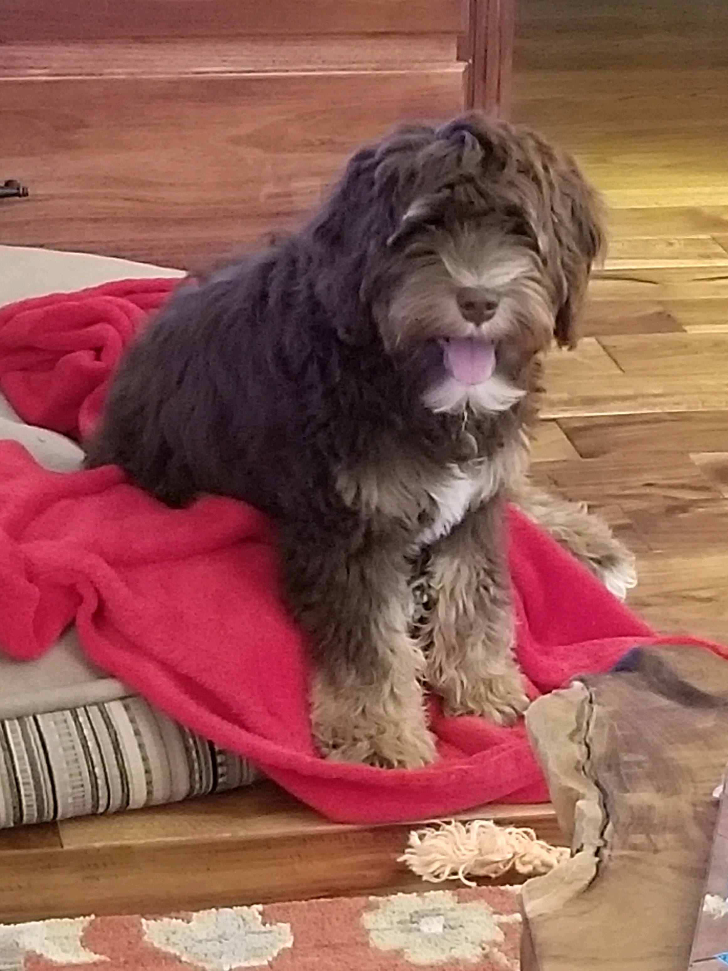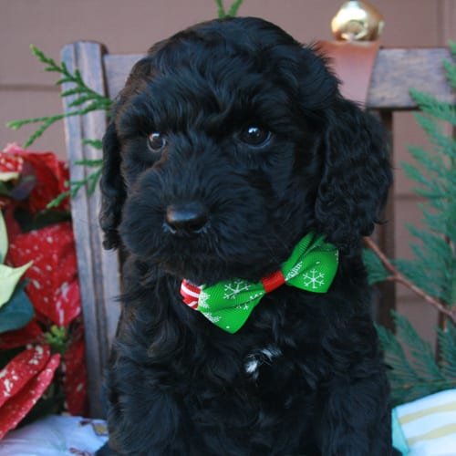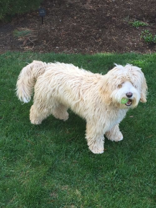 Most of our dogs have wavy or curly fleece coats. These are wonderful, soft, non-shedding coats that are allergy-friendly and beautiful. Â