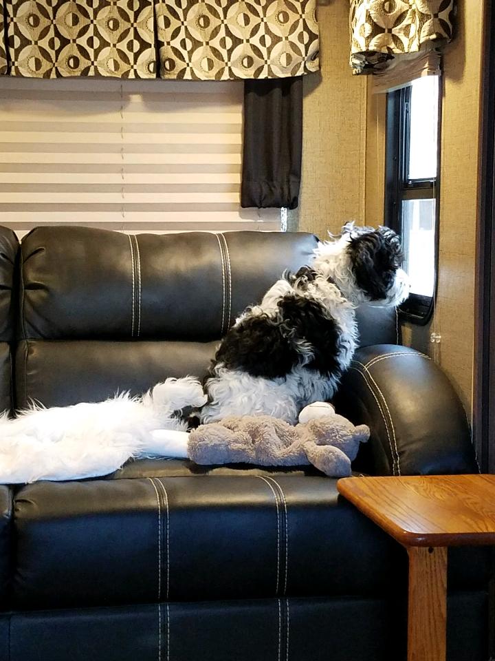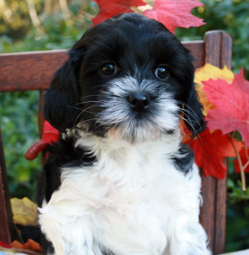 - Black and white parti with wavy fleece coat.