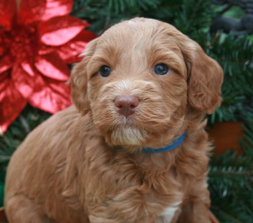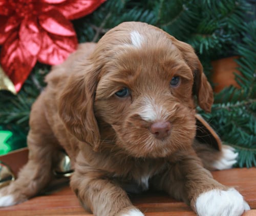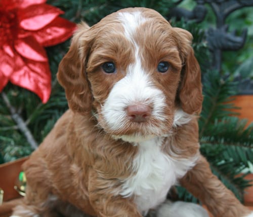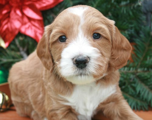 We have puppies in each gender and a variety of colors and markings that will be ready to go home in June. The pups will be in the 25-30ish pound range and their coats are silky soft and non-shedding. Check out our current and upcoming litters page for more information on available miniature and medium labradoodle puppies.